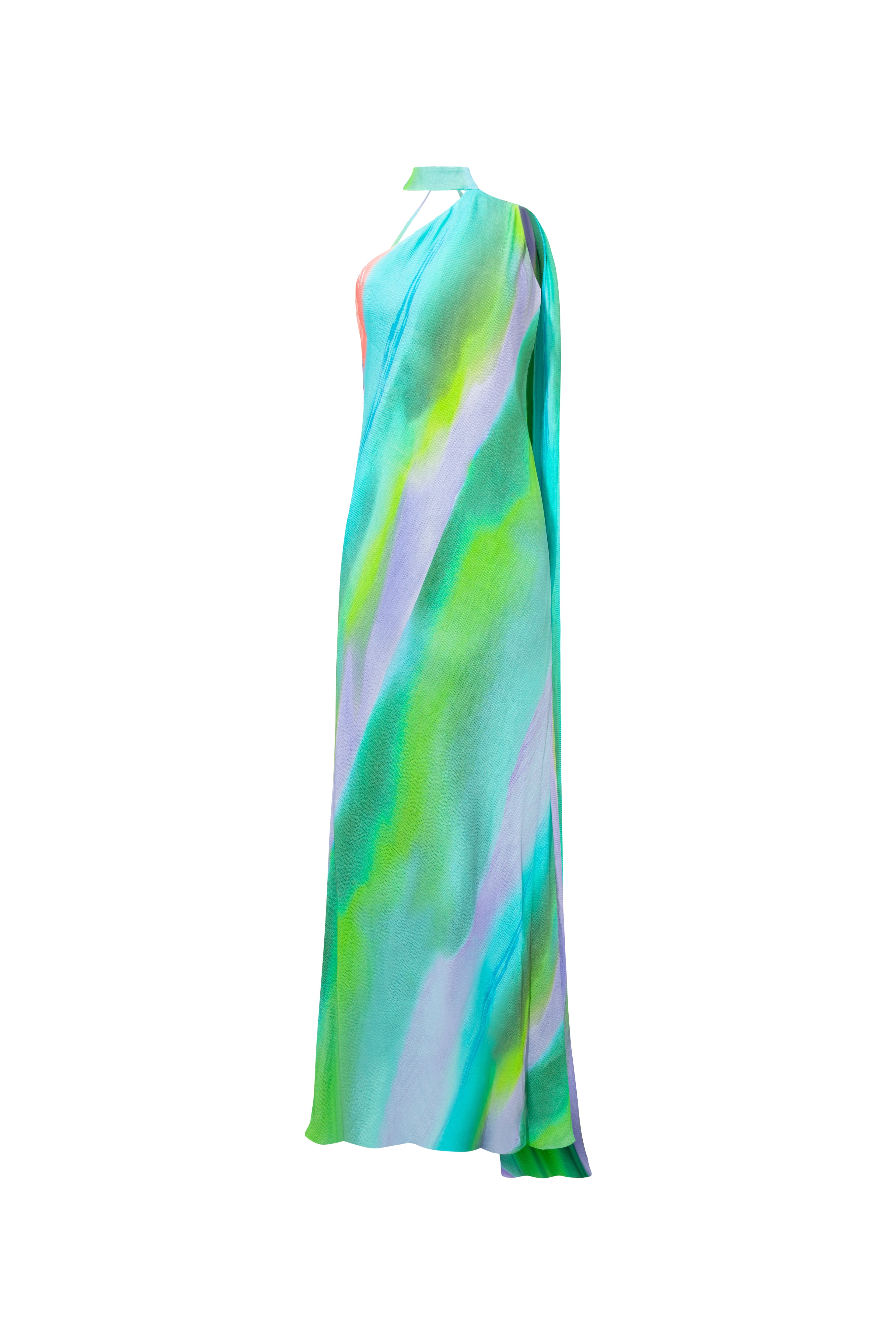 Eva Dress offers a sophisticated style with its silky satin texture and delicate color transitions. Its lightweight structure ensures a comfortable wear with lining, while the one-shoulder design and elegant long scarf create a striking silhouette. The deep open-back detail adds a striking look, while the fluid form of the dress harmonizes gracefully with your movements.