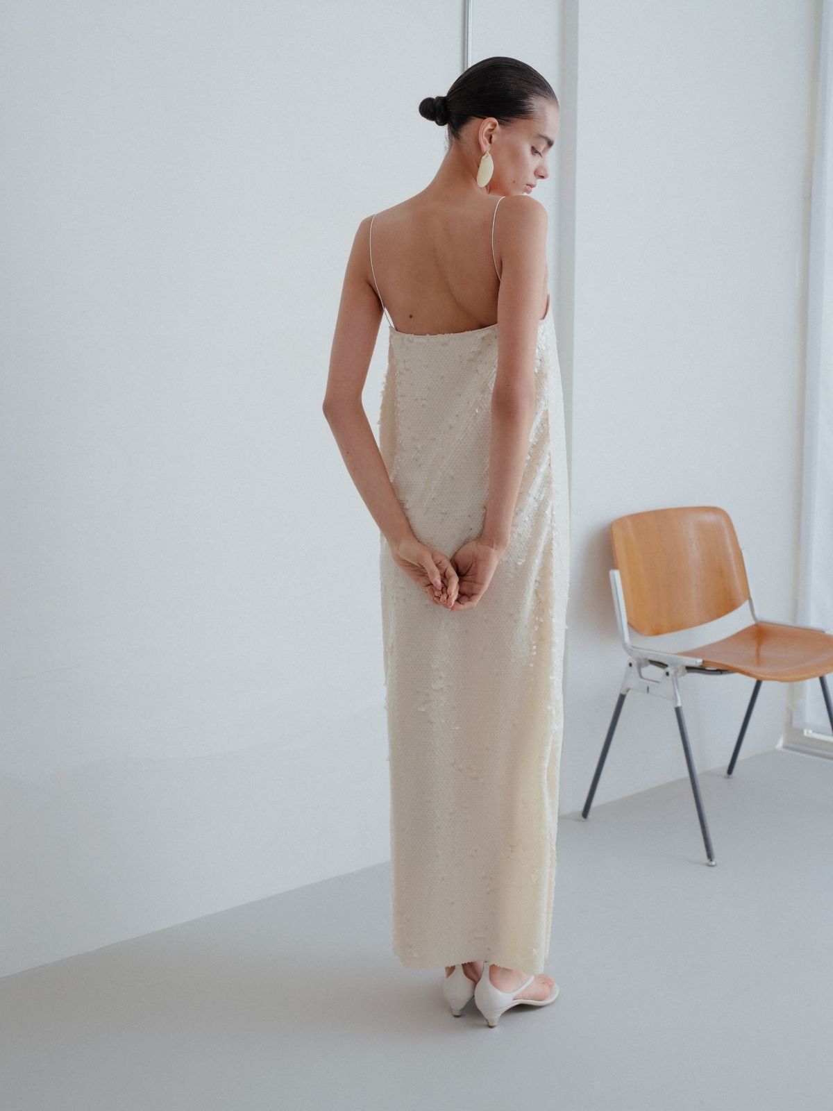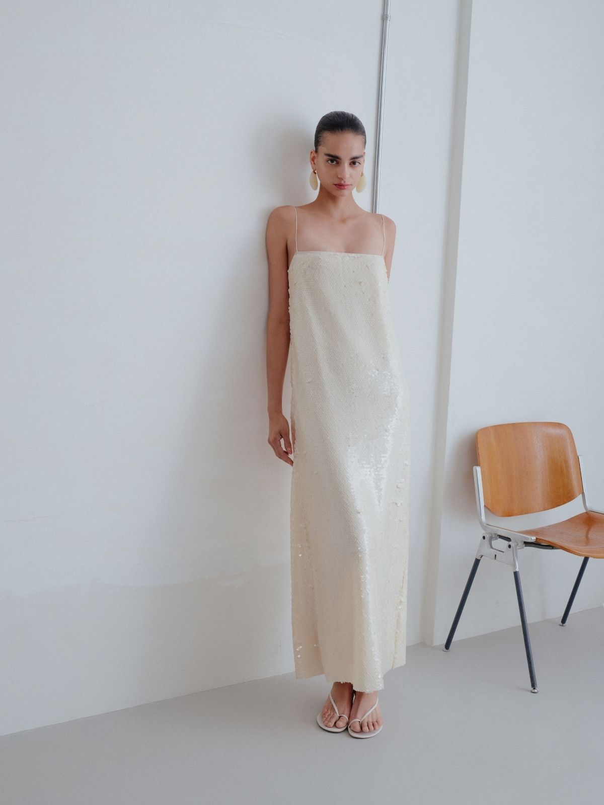 Illuminate your evening look with this elegant white sequin dress, designed to captivate with every step. Adorned with shimmering sequins throughout, it features delicate thin straps and a refined neckline that enhances its sleek, feminine silhouette. Falling gracefully to an elongated hem and fully lined for comfort, this sophisticated piece is made to shine at special occasions and unforgettable celebrations