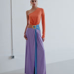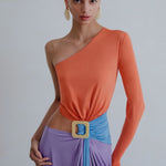 The Lola Maxi Jersey Dress blends modern elegance with bold design. Crafted from soft, fluid jersey fabric, it features a striking three-color composition, a sophisticated one-shoulder silhouette, and a waist cut-out detail accented with a statement buckle. Effortlessly chic and comfortable, it’s the perfect choice for standout occasions.