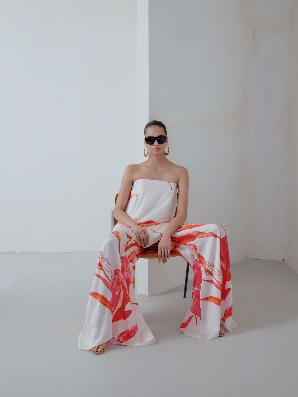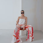 The Violet floral satin pants combine comfort with elevated elegance. Crafted from fluid satin with a delicate floral pattern, they feature an elasticated waistband for an effortless, comfortable fit. Their relaxed, flowing silhouette moves beautifully with the body, making them a chic yet easy choice for day-to-night styling.